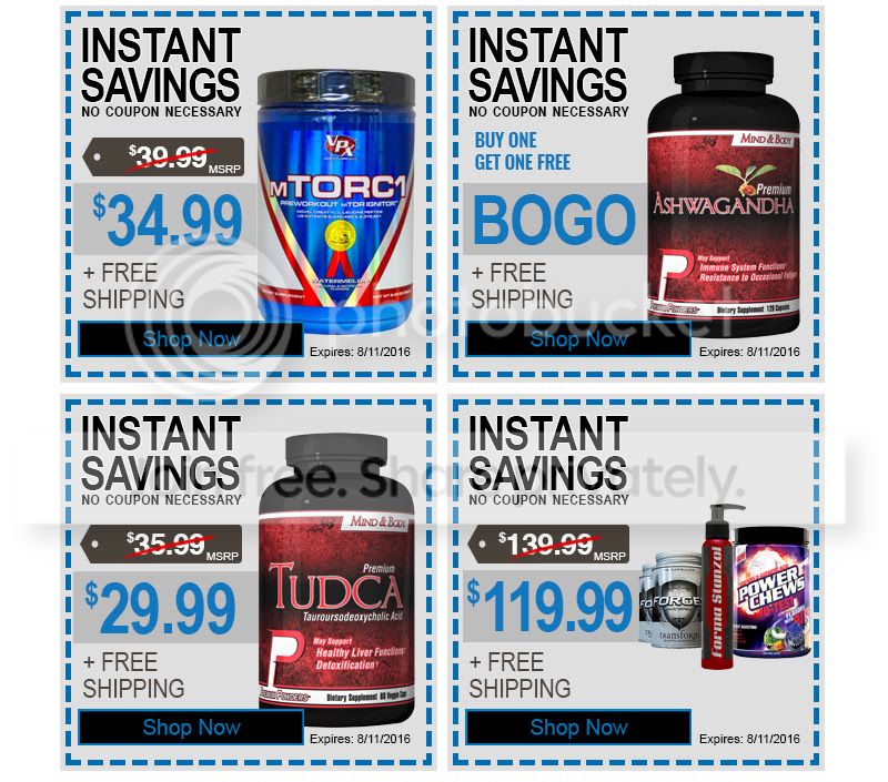 Once again we have another great sale this week...featuring B-drol, Perfect Post Cycle Therapy Stack, TUDCA, VPX mTORC1, and Premium Powders Ashwagandha...which we are having a BOGO FREE deal on!!!
