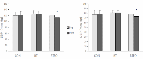 Supplementation with fish oil in combination with fish oil lowered blood pressure. In the RTFO group, systole decreased by 7.8 points and diastole decreased by 4.5 points.