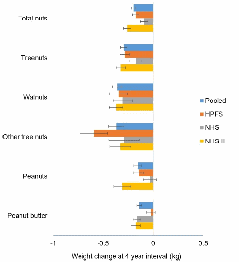"Increased total consumption of nuts and intakes or individual types of nuts were associated with less weight gain despite being calorically dense", write the researchers.