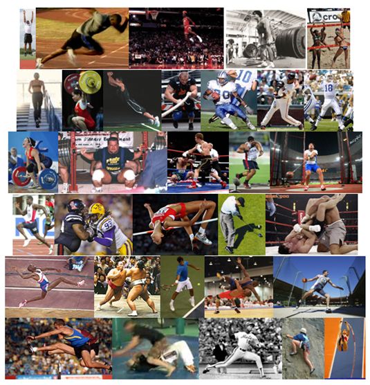 • Let the sporting actions dictate the best way to train in the weightroom. See the pictures below. What do these pictures tell you? Consider the exact lines of decelerative and propulsive force for each activity. Then analyze which strength and power exercises follow similar patterns of force vectors.