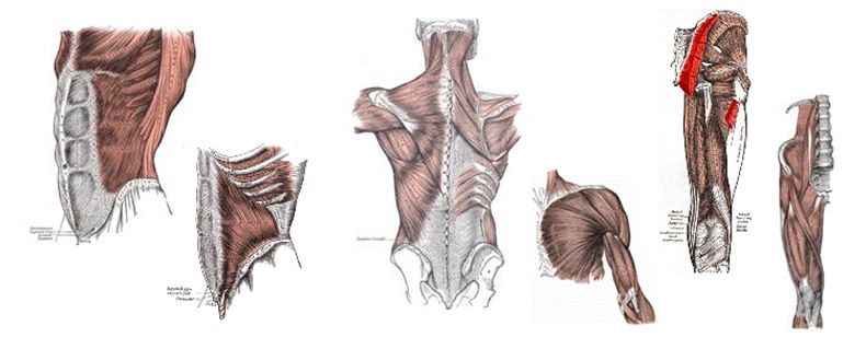 • Let the muscle fiber directions dictate the best way to train a muscle part, muscle, or muscle group. See the pictures below. What do these fiber directions tell you?• Hit the muscles from different angles, and perform some movements that target the stretch position, some that target the mid-range position, and some that target the contracted position.