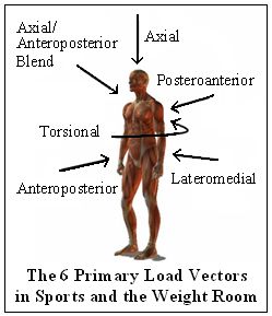 • When using barbells or dumbbells, standing lifts usually target axial vectors, supine lifts usually target anteroposterior load vectors, and prone lifts usually target posteroanterior load vectors.
