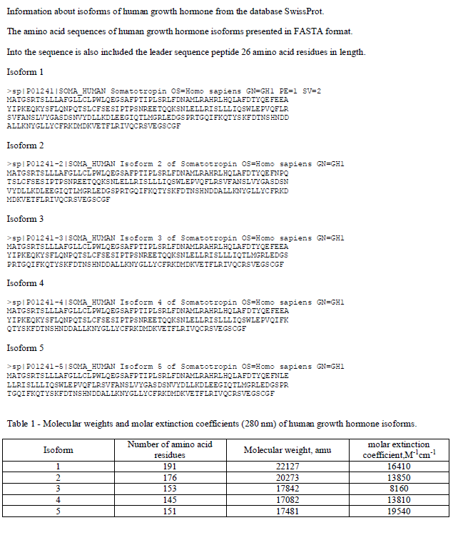 As result we can state that Simec confirmed presence of real HGH in its isoform Nr.1 with 191 amino-residues.