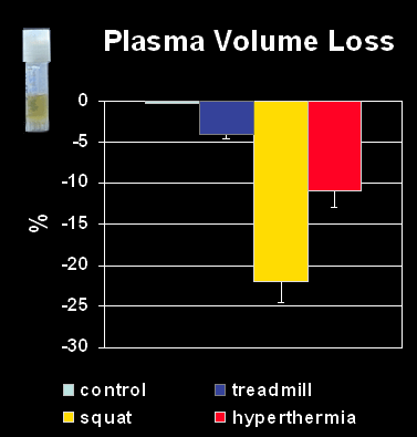 Whether it's exercise (which seriously affects plasma volume), heat (which affects it even more), or even a squat workout that induces a shift of fluids into the interstitial space (a "pump"), we sacrifice a little bit of our overall blood volume as we exercise.