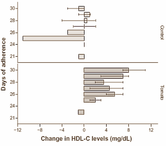 The effect on the HDL level increased as the experiment progressed, as shown in the figure above.