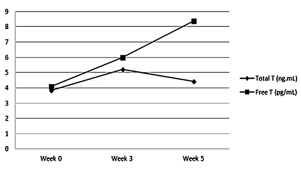 While levels of cortisol, IGF-1, and DHEA remained largely unchanged, free and total testosterone levels went up significantly in both men and women, as did grip strength.